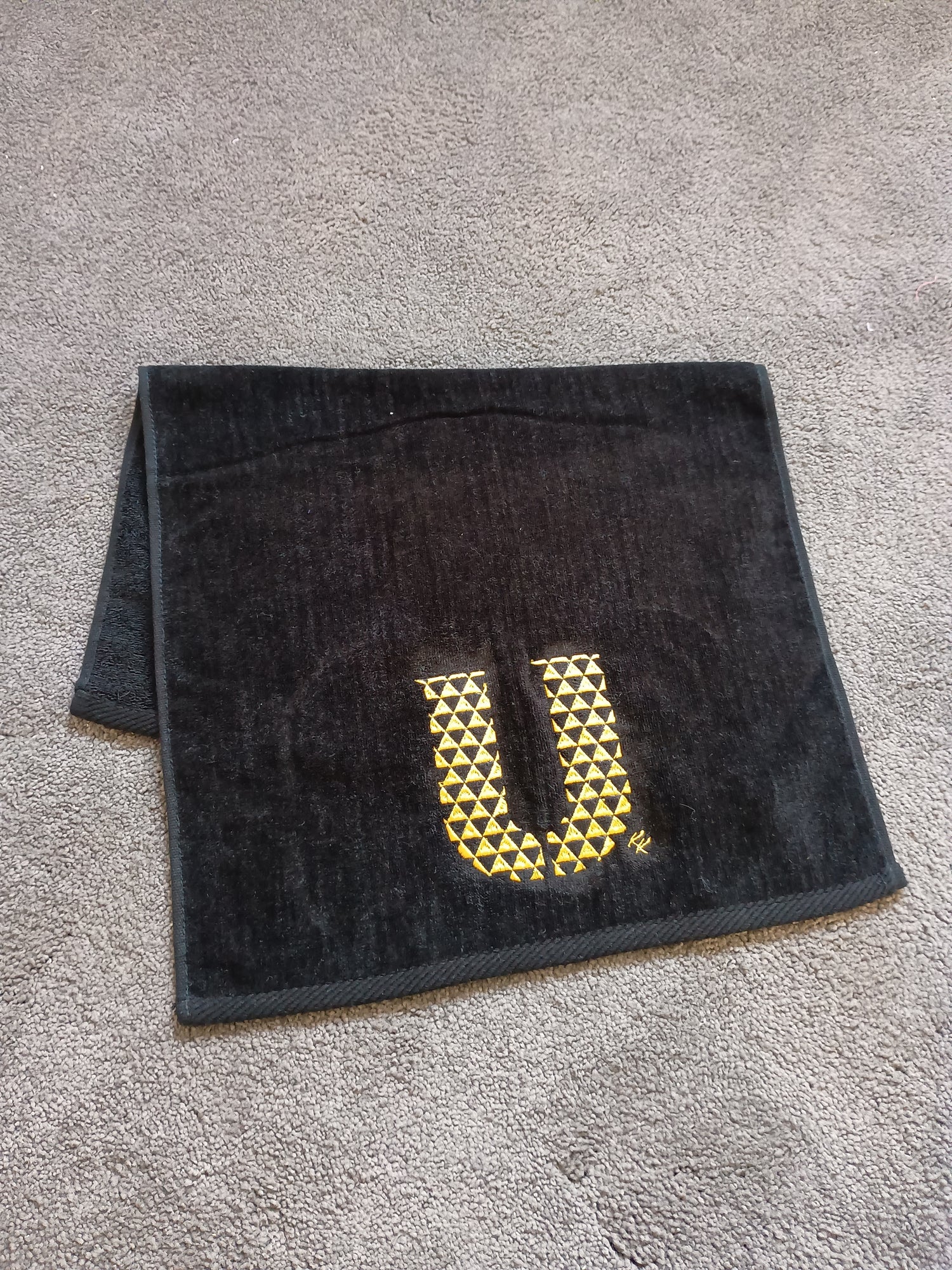 40x65cm Black Sports Towels. Embroidered monograms filled with beautiful patterns