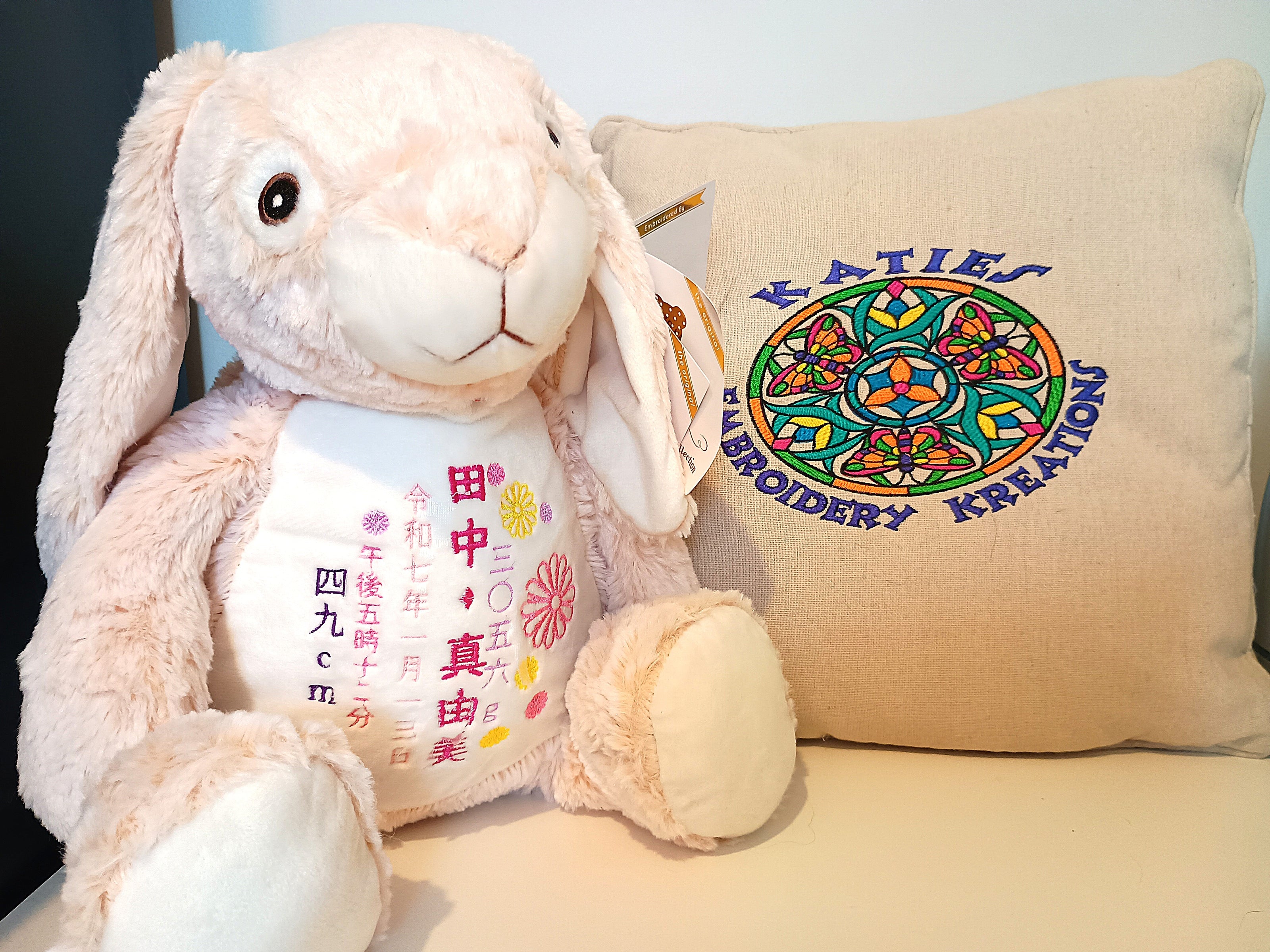 We can embroider in different languages—English, Japanese, and working on to support more. Perfect for names, greetings, or messages across cultures, ensuring your gift speaks directly from your heart.