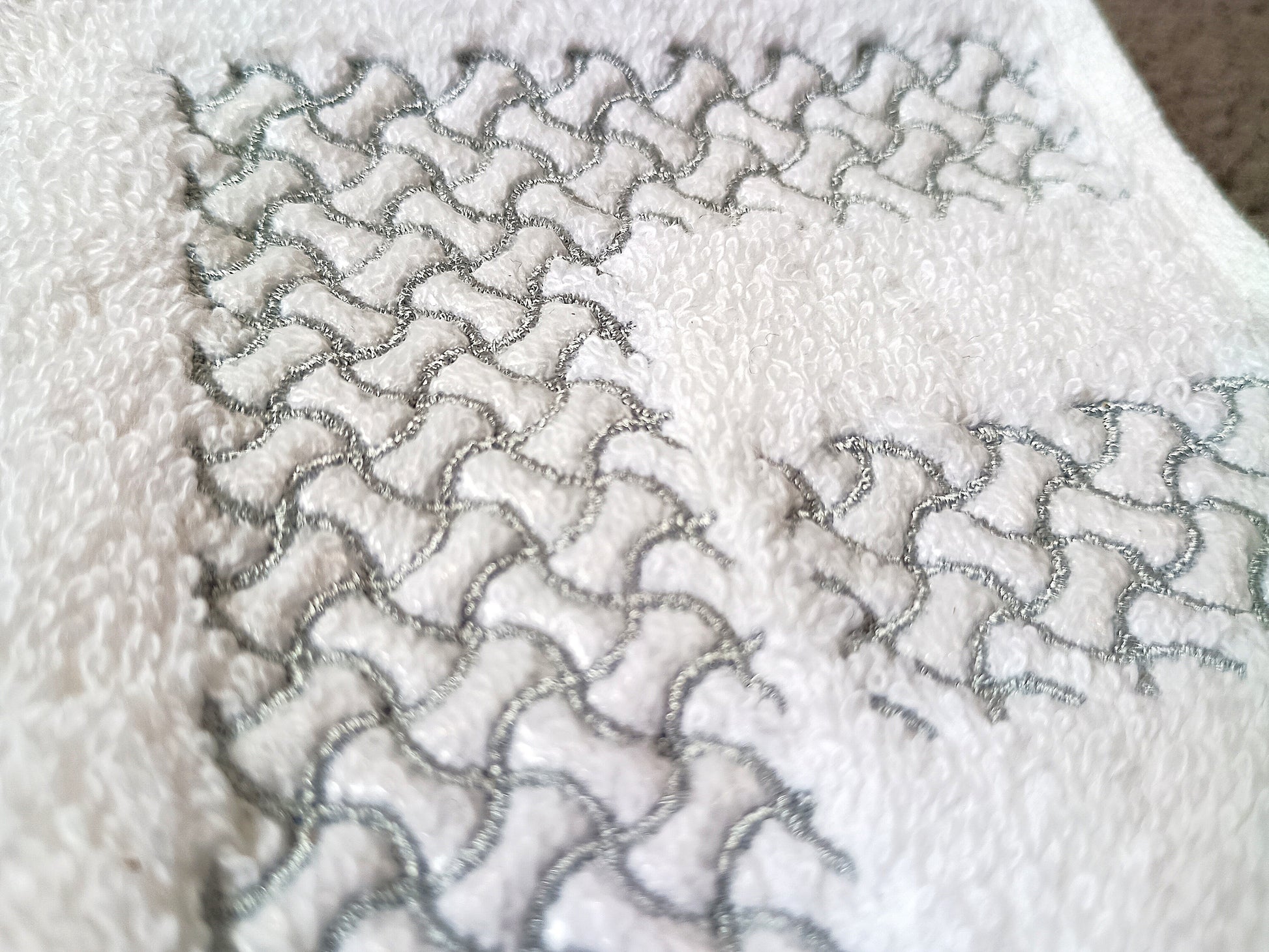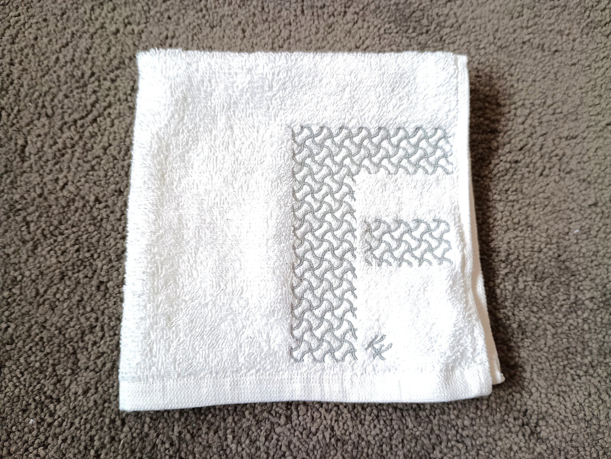A monogram letter F filled with the wagara (Japanese pattern) Fundoutsunagi. traditionally symbolises connection and balance. Your name (or a special loved one’s) beautifully embroidered, with personalisation included at no extra cost.