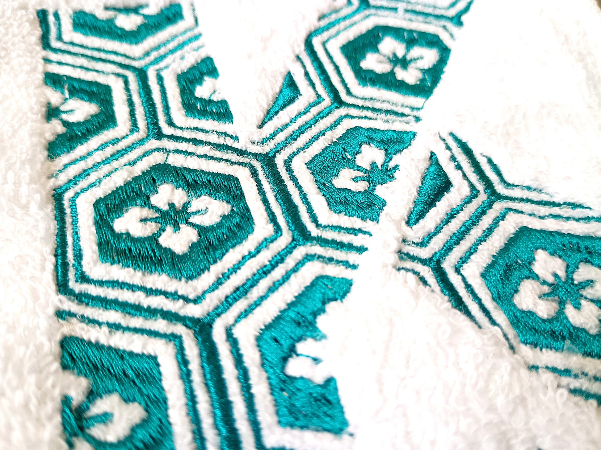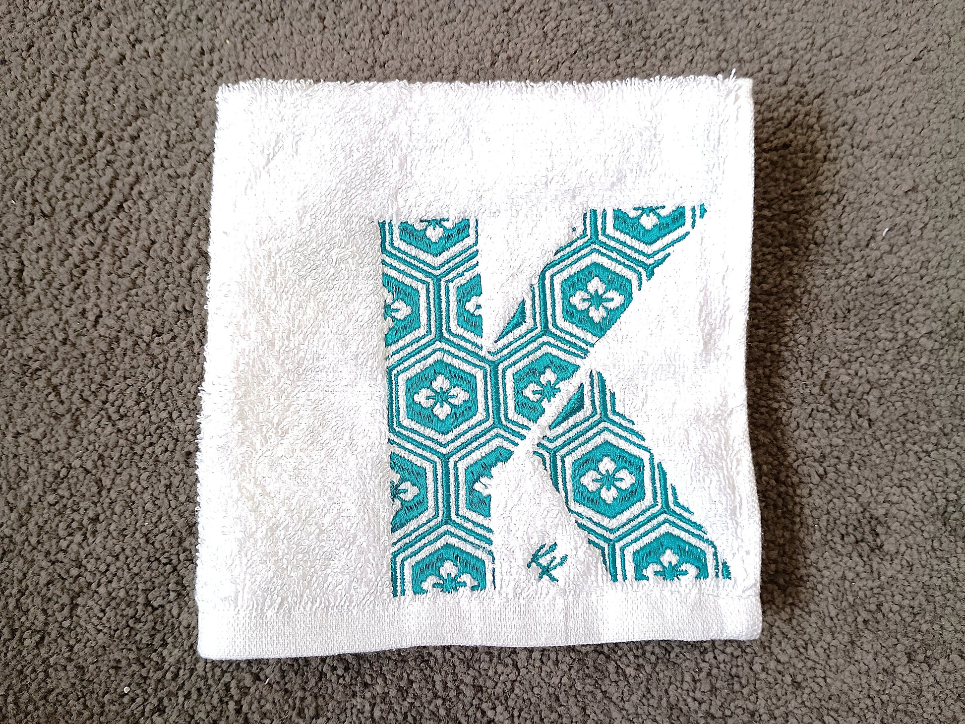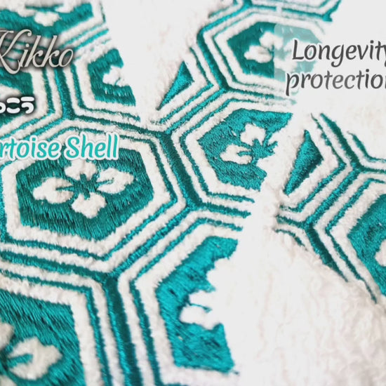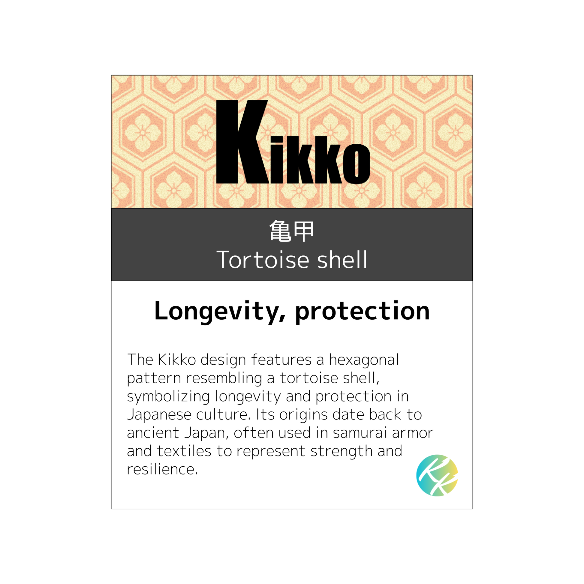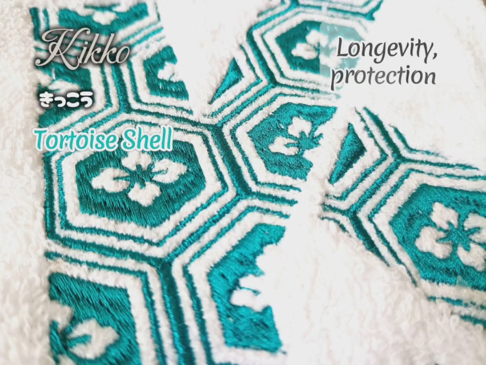 A monogram letter K filled with the wagara (Japanese pattern) Kikko. Kikko traditionally symbolises longevity and protection. Your name (or a special loved one’s) beautifully embroidered, with personalisation included at no extra cost.