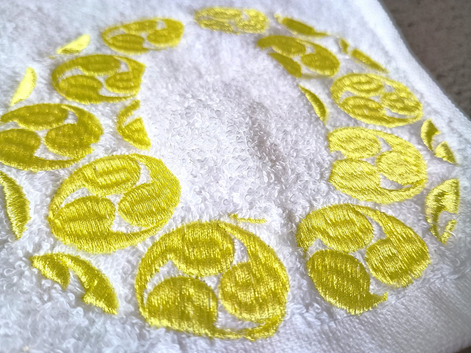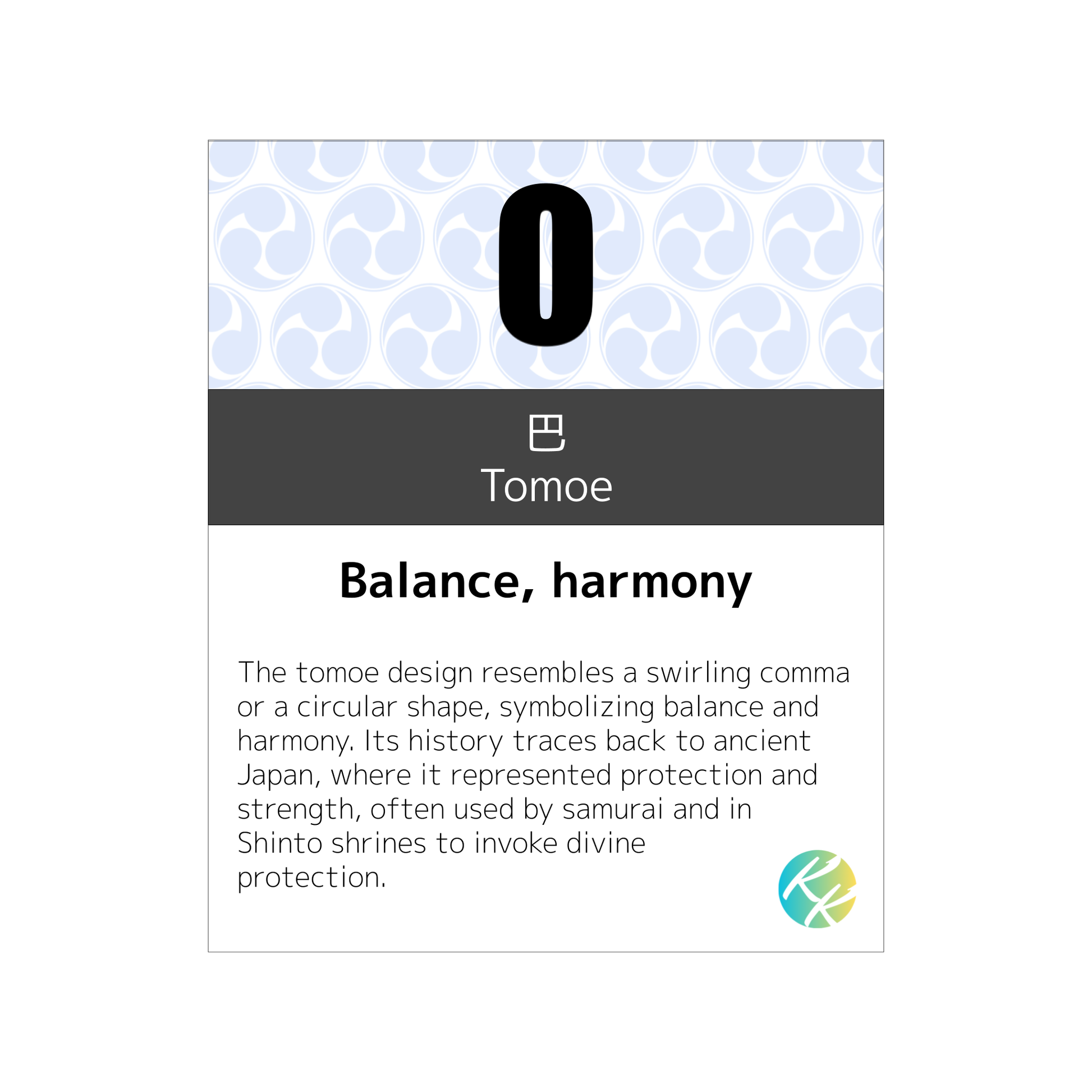 A monogram letter O filled with the wagara (Japanese pattern) Tomow. Tomoe traditionally symbolises balance and harmony. Your name (or a special loved one’s) beautifully embroidered, with personalisation included at no extra cost.
