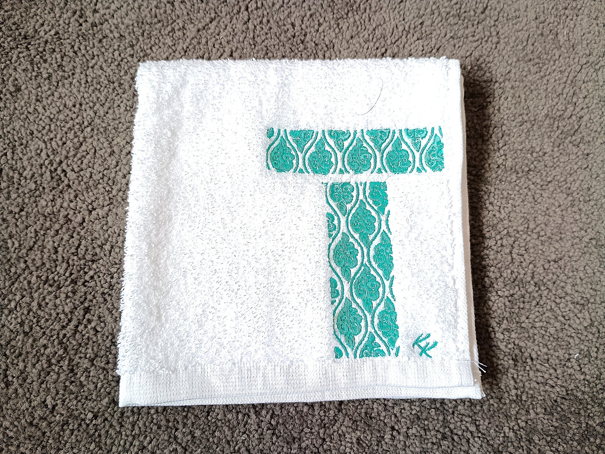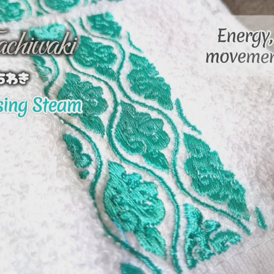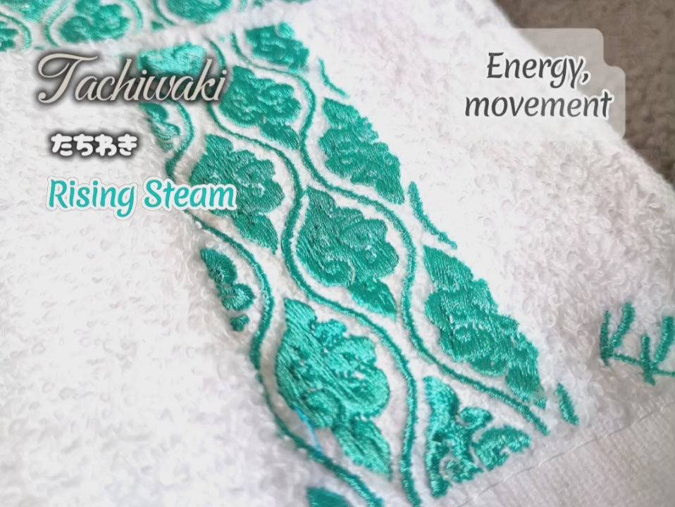 A monogram letter T filled with the wagara (Japanese pattern) Tachiwaki. Tachiwaki (Rising steam) traditionally symbolises energy, movement. Your name (or a special loved one’s) beautifully embroidered, with personalisation included at no extra cost.