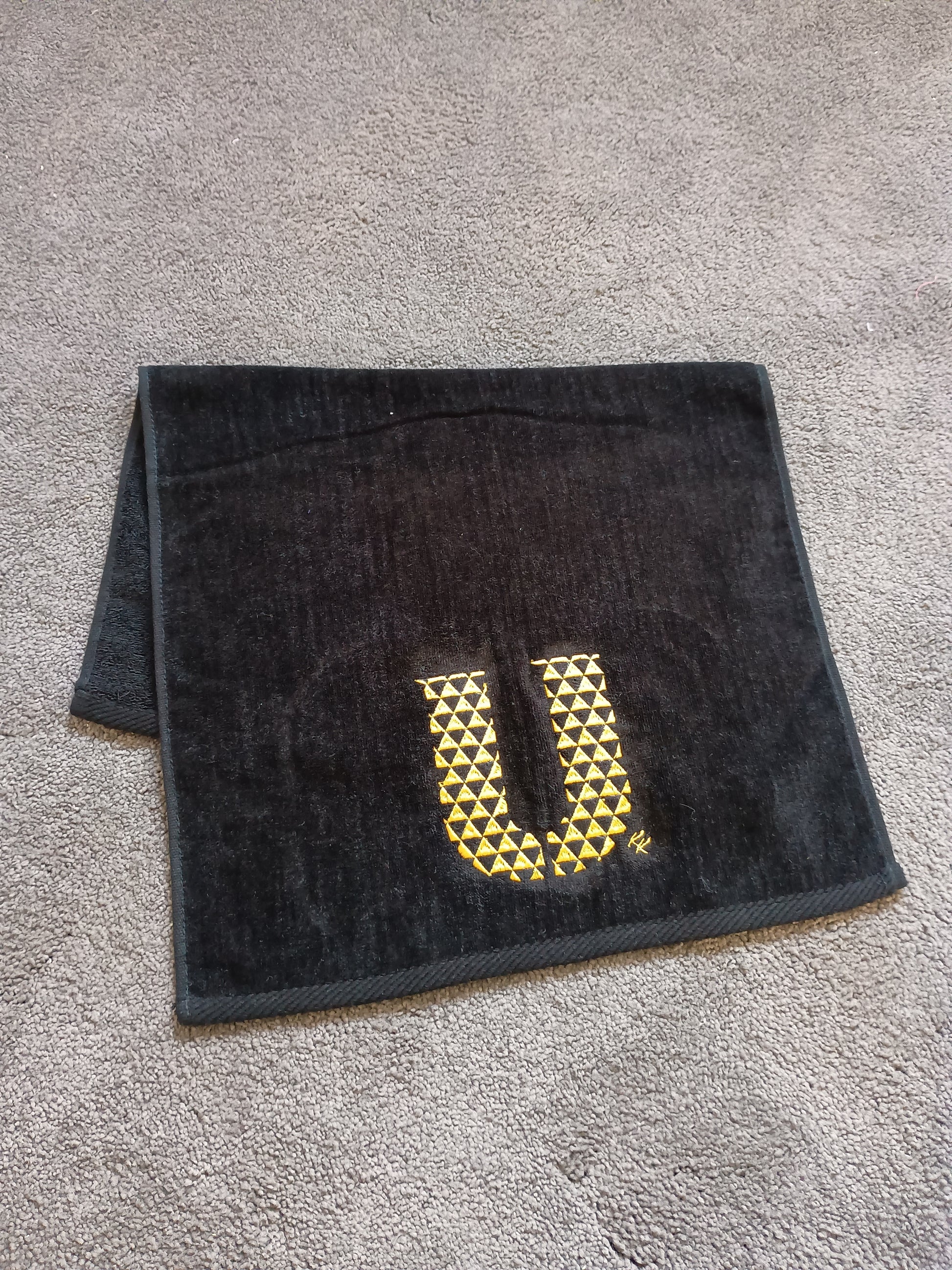 A monogram letter U filled with the wagara (Japanese pattern) Uroko (Scale). Uroko traditionally symbolises transformation. Sports towel is 40x65cm and is made from 100% Cotton Velour